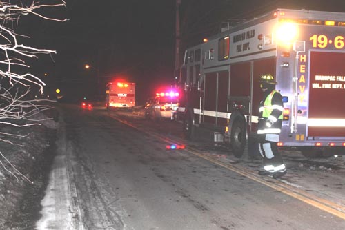 Mahopac Falls Fire Department members were readying themselves for a SUCBA drill when they were toned out for a "car into a pole" on Rt. 6N, delaying the drill and triggering an immediate department response. To protect operations, fire police shut one lane diverting northbound traffic around the crash. No injuries were reported.