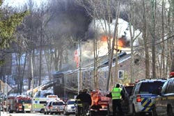 ![]() Crews of Mohegan Firefighters work the scene |