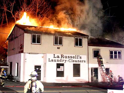 An 8:30 p.m. fire broke out in La Russell's Laundry-Cleaners, located on Route 52 in Lake Carmel. Although out of business for some time, it was reported the building still contained many dry cleaned items which forced abandonment of an initial interior attack. Of the two apartments located above, one was not occupied, and the other quickly evacuated. Lake Carmel Fire police had to shut down Route 52 for approximately 4.5 hours. Carmel, Kent, Brewster, Patterson were also assisting at the scene along with Carmel Volunteer Ambulance. The cause of the blaze at this time remains under investigation.