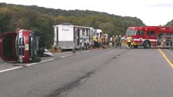 Patterson, Lake Carmel, and Putnam Lake Fire Departments were called to a truck fire on the east bound exit ramp from I 84 to Route 311. Upon arrival the pickup, towing a vacation trailer, was fully involved. Fire police from Patterson and Lake Carmel closed the ramp and expedited an unexpected hasty departure across 311 by two engines from the scene, when they were called under mutual aid to assist at a house trailer fire in a neighboring town.