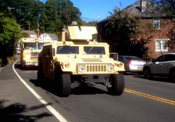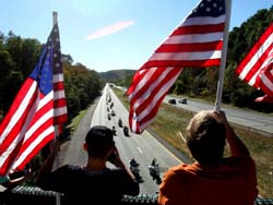 The Patterson fire police were selected to join Brewster and Carmel Fire Departments, assorted veteran's vehicles, and over 200 motorcycles, in escorting "The Wall" from the rest area on I 84 in (Westchester County), through eastern Putnam County, ending at the County Park. The exhibit honors those who made the ultimate sacrifice during the Vietnam War. The travelling exhibit was erected there to be available for public viewing for the remainder of the week.