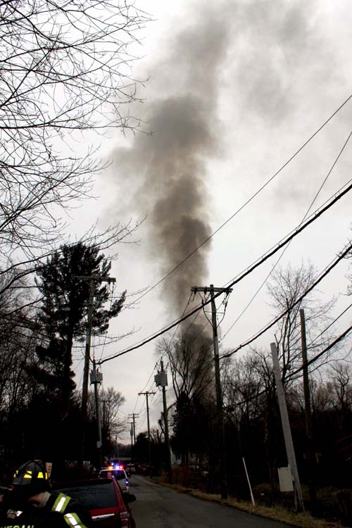 A call for the Mahopac Falls FD Heavy Rescue with air bottles and compressor unit to respond to the Mohegan Fire District and assist with a working structure fire on Buckhorn Rd. off East Main Street was dispatched early Sunday afternoon. Smoke from the structure could be seen for miles as Mohegan arrived within minutes and Mahopac Falls, Yorktown and Peekskill units got on the road. Mohegan Fire Police detoured traffic around the scene as Mohegan EMS set up to support their firefighters.