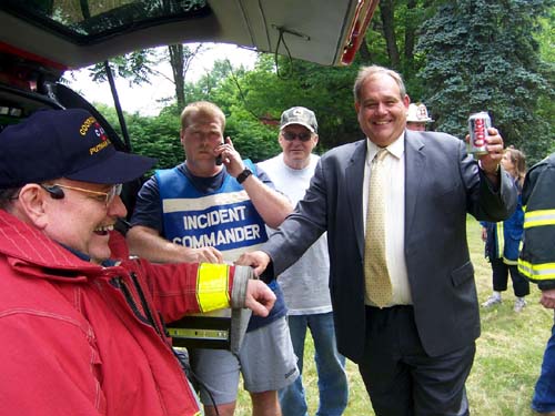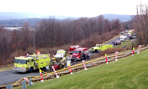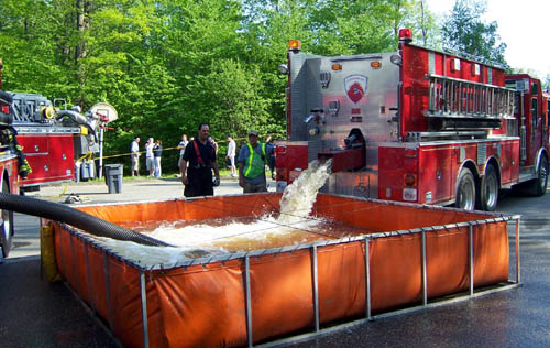 Members of the Lake Carmel, and Putnam Lake Departments in Putnam and Pawling Fire from Dutchess County, took part in a MA tanker shuttle drill in Patterson. Sixteen fire police from all four departments also participated. 07/12/07 |