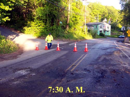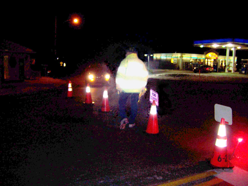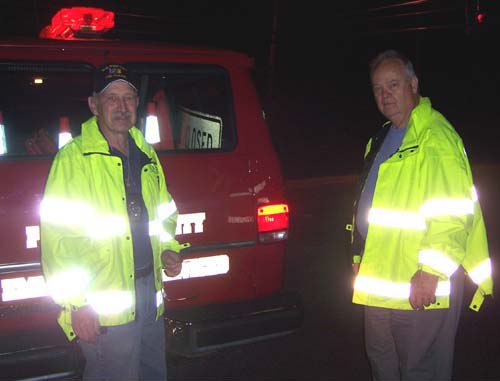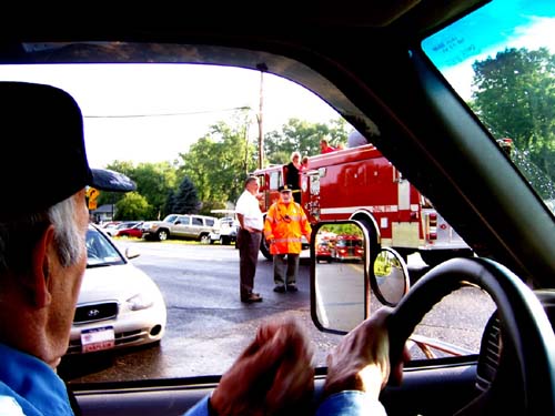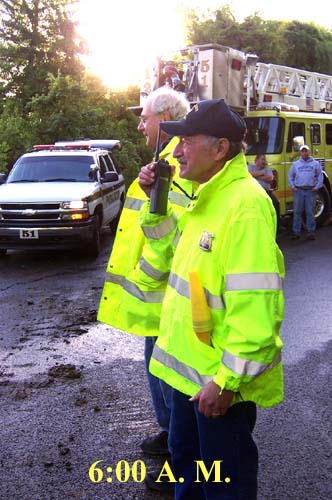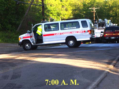 Putnam County Fire Police Team members leave Dunkin Donuts at dawn after answering Brewster FD's 2 A. M. call to close Rt. 22 due to a serious PIAA. 07/22/07 |