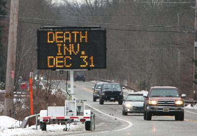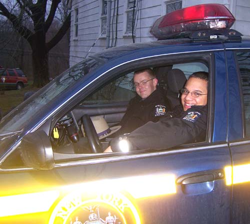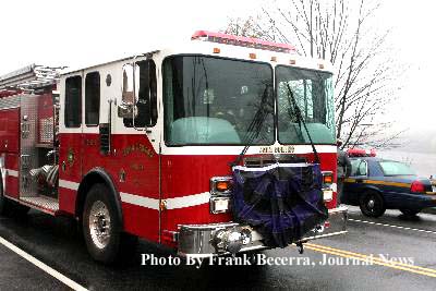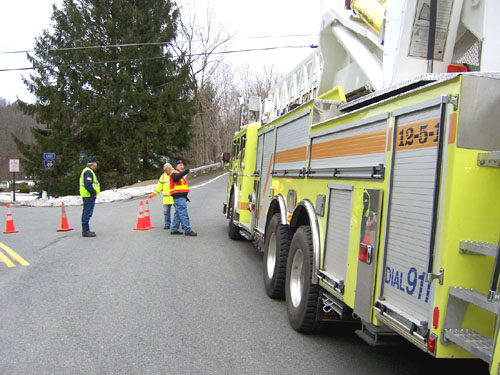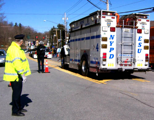 On New Year’s Eve, just as a snow storm was winding down, the Putnam County Fire Police Response Team was requested to assist the Garrison FD and the Putnam County Sheriff’s Office at a homicide investigation in Garrison. The victim, John Marcinak, owner of the Garrison Garage and a member of Garrison FD, was found along Rt. 9 and initially thought to have been hit by a car. At the hospital, it was later determined he had been shot several times. The team closed a section Rt. 9 and was on duty for about eight hours while the PCSO completed their investigation. A reward is being offered for information in the case. All photos by Frank Becerra Jr., Journal News 12/31/08 |