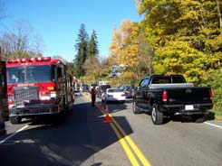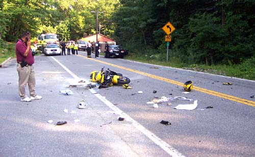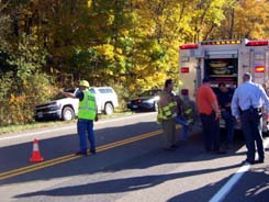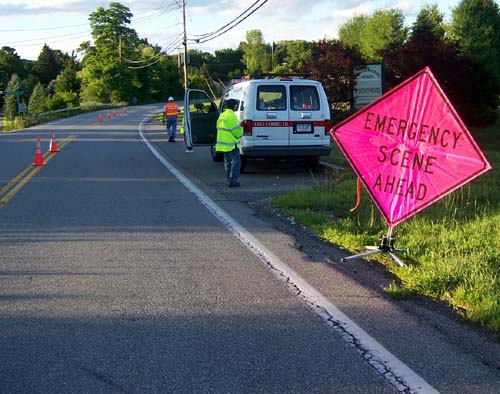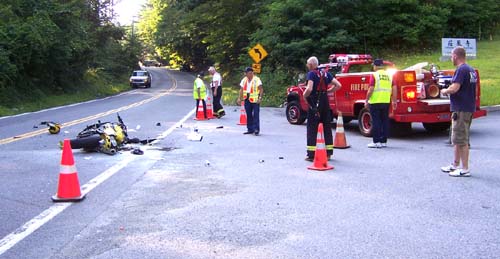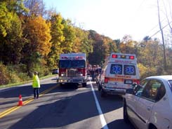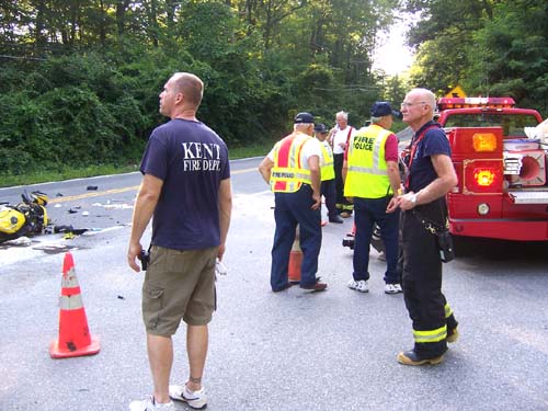 On Sunday, August 24, '08 members of the Putnam County Fire Police Response Team from Brewster, Lake Carmel, Mahopac, Patterson, & Putnam Valley Fire Departments were called by Kent FD to shut down Route 301 for a fatal motorcycle/car crash in front of the Buddhist Monastery in Kent. 08/24/08 |