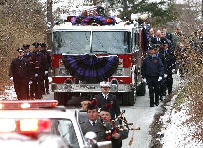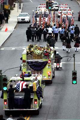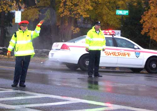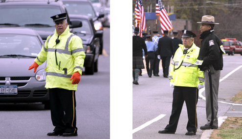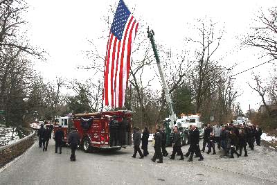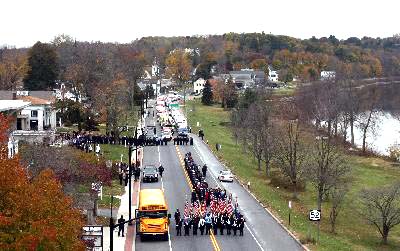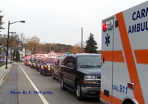 Over 20 Putnam County Fire Police Team Members along with additional fire police from Putnam and Dutchess Counties were deployed on November 10th & 11th, 2007 at the request of Carmel FD. They were needed to supplement local police agencies at the LOD wake and funeral of Carmel firefighter/EMT Lt. Matthew Lamb who was killed last week when the ambulance he was riding in crashed. The hundreds of mourners in the funeral procession necessitated closing the section of Route 52 that passes through the center of the Village of Carmel along with several other local roads.
