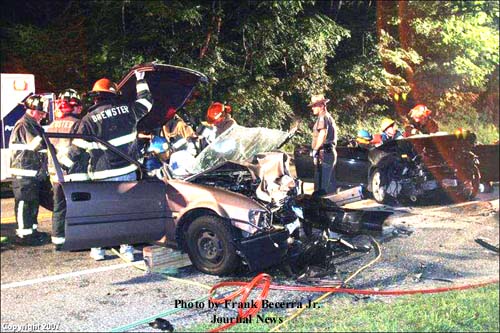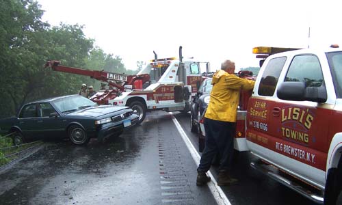Lake Carmel & Patterson responded to I-84 where two cars left the road and went down an embankment in a heavy rain storm. 07/05/07 |