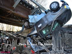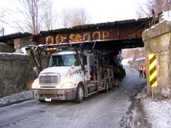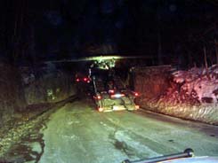 Shortly before 5 AM, with temperatures hovering around zero, the Patterson Fire Dept. was called to respond to a car carrier that became wedged under a Rail Road Bridge along Route 311. The Putnam County Fire Police Response Team was requested to assist and help detour commuter traffic, maintaining a total of 5 detours until the road was finally reopened at 9:00 AM. 03/05/09 |