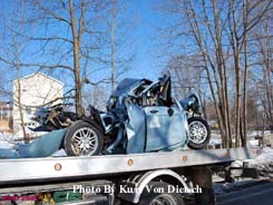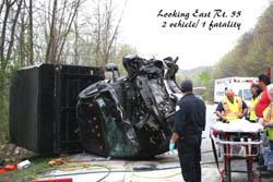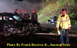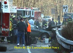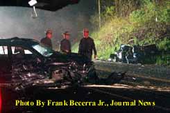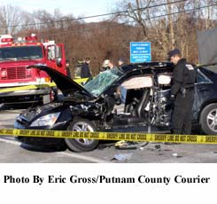 Brewster Fire Police had to shut down Route 22 for a two car, Saturday night, fatal crash. Two females in a 2006 Honda were traveling south when their car was hit head-on by a north-bound 2009 Nissan occupied by two males. The 25 year old male driver lost control of his vehicle which crossed into south bound lane, north of Doansburg Road, instantly killing the 56 year old passenger in the Honda. An observer at the scene reported the estimated speed of the Nissan exceeded 100 mph. The male driver was air-lifted to Westchester Medical Center, the female driver and male passenger were both transported to Danbury (CT) hospital. Brewster FD was assisted by Patterson and Putnam Lake Fire Departments. The Putnam County Sheriff's Office is handling the investigation.