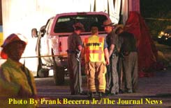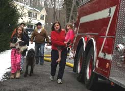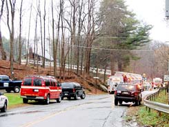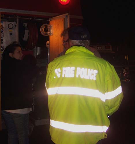 A full complement of six Pawling Fire Police responded with their department to a structure fire in a residence on Old Route 55. They were joined by members of the Beekman Fire Police who accompanied their department requested under mutual aid. Old 55 was shut down from Dodge Road to Harmony Hill Road North for about six hours. All photos by Sharon Boo 11/30/09 |