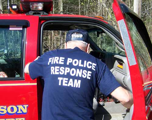 Nine Putnam Fire Police Team members with two fire police vehicles, interrupted another Sunday afternoon to respond to a request by the Kent Fire Department to again shut down Route 301 for a serious motorcycle crash. Two bikes collided with a pickup truck backing out of a driveway killing one 60 year old biker and injuring another along with the driver of the truck. Route 301 remains the most notorious location for many of Putnam's serious biker crashes.