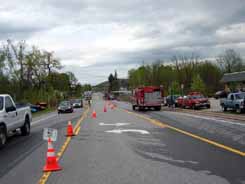 Pawling & Patterson Fire Departments twice went mutual aid in as many days, working together on Route 22. On 05/07/09 Pawling Fire Police assisted Patterson in closing 22 for several hours to enable the NYSP to investigate a three car crash in which one driver perished. The crash, roughly 100 yards, just south of the Dutchess line and 250 yards from the fire call (See Below). The Putnam County Fire Police Response Team was also pressed into action diverting north-bound traffic.