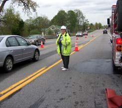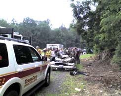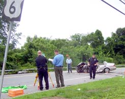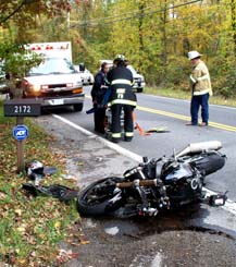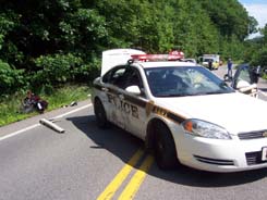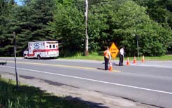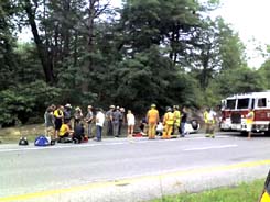 The team again spent about three hours on a Sunday afternoon at the site of a motorcycle-car crash on Putnam County's premier bike track, otherwise known as Route 301. At the request of Kent FD the road was closed until a police investigation was completed. 06/28/09 |