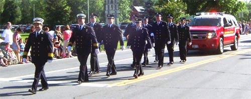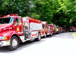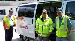 Over 20 members of the Dutchess and Putnam County Fire Police Teams worked together for the second time providing traffic control for a parade and inspection in New Hackensack Fire Department's District. The teams first cooperated ten years ago on NHFD's 50th Anniversary .. this year, on the celebration of their 60th. It would be hard to stage a larger, more realistic mutual aid drill. Over thirty departments participated and the crowds were estimated to be well over 1000. The parade disrupted Saturday traffic at the intersection of All Angels Hill Road and Myers Corners Road, two major Dutchess thoroughfares and the location of the firehouse and carnival. See also 06/08/09 Putnam County Fire Police Response Team. 05/30/09 |