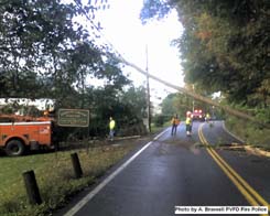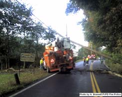 Putnam Valley Fire Police responded to a call of a tree on wires on fire on Peekskill Hollow Road, 0.5 miles north of the Taconic State Parkway. One lane was actually kept open until 0755 when NYSEG arrived to remove the tree from the power lines.