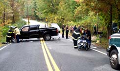 11/16/09 Just a week prior on 11/10/09, Garrison FD, this time assisted by Continental Village, responded for a similar fatal crash involving a north bound Nissan Altima which crossed into the oncoming lane and into a 10-wheel flatbed. The car driver, who had to be extricated, got the worse of the crash. STAT-Flight transported him to Westchester Medical Center where he was pronounced dead. The truck driver was uninjured. Garrison fire police along with Continental Village fire police shut down Route 9 in the area north of Rt. 403. The Putnam County Fire Police Response Team was also requested to assist. 11/10/09 |