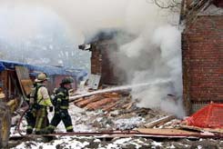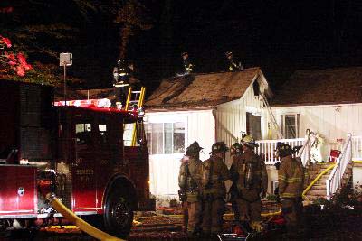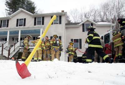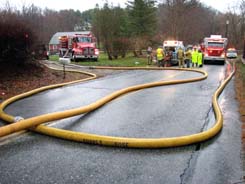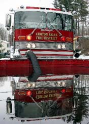 The Brewster FD responded to an afternoon fire in a house under renovation at 399 Brewster Hill Road. Tankers from the surrounding departments including Patterson, Putnam Lake and Carmel FDs were requested along with Lake Carmel’s FAST Team. Brewster fire police blocked the perimeter assisted by the Putnam County Sheriff’s Deputies. A Brewster pumper established a water source at a nearby pond in Patterson on Farm-To-Market Road. Patterson fire police were detailed to reroute traffic around the tankers as they were filled and slow traffic on the ice covered roadway. 02/06/10 |