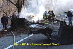 Continental Village FD responded to two (2) fatal car-truck crashes on Rt. 9 in less than a week. A female driver crossed into the oncoming lane and into the path of an 18 wheeler loaded with sheetrock. The truck swerved to avoid the car and crashed into a tree where it burst into flames. The car collided with the guard rail. The truck driver died at the scene, the driver of the auto was STAT-Flighted to Westchester Medical Center. NYSDOT was busy removing the tree while Continental Village, Garrison and Peekskill fire police isolated the section of Rt. 9 providing for the police investigation and, rerouting scores of motorists.