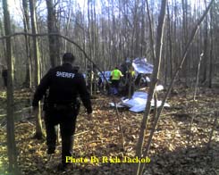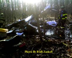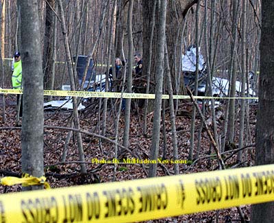 After reporting an oil pressure problem, a single engine 1974 Piper Cherokee flying out of Orange County Airport to Danbury, CT, was instructed to make an emergency landing at Dutchess County Airport. The craft crashed four miles short of the runway in the woods off Spookhill Road (New Hackensack Fire District), killing the pilot and seriously injuring a passenger who was airlifted to Westchester Medical Center. According to NHFD & East Fishkill fire police, it was difficult at first to pin-point the exact location of the plane, which was first thought to be attempting a landing on Route 9…in fact the initially established IC had to be moved (to a cooperative private resident’s back yard on a road off Spookhill) once the craft was found. In spite of the fact fire police closed Spookhill to isolate the scene, sightseers flocked to the area and entered the woods from all directions. Several consecutive rings of tape barriers were set up approaching the scene and along the perimeter and around scattered pieces of the plane. As an interesting side bar, the late NHFD Ex-Chief and Dutchess Co. Coordinator and Past President of The Dutchess Fire Police, William “Bud” Pottenburgh, some forty years ago, according to Rich Jackob, (President of the Volunteer Fire Police Association of Dutchess County), “was the catalyst that started” the VFPADC. “His foresight into the possibility of an emergency occurring at the Dutchess County Airport prompted him (the then Chief of the New Hackensack Fire Company in Wappinger's Falls) to call for a meeting of interested fire companies to preplan Fire Police coverage at the airport.” By November 17th, 1969 the “Dutchess County Fire Police” was formed…thereafter their name was changed to "Volunteer Fire Police Association of Dutchess County. President Jackob is pictured, officer in the yellow coat, in the last photo of this album. 11/22/09 |