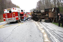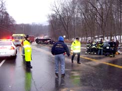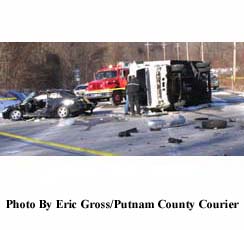The Putnam County Fire Police Response Team had their first call of the New Year when they were requested by the North Highlands Fire Department to shut down Route 9 & 301 for a four vehicle crash involving a large box truck. One driver’s injuries were deemed serious enough to warrant Stat-Flight evacuating the subject to Westchester Medical Center in Valhalla. Road blocks were set up at Fishkill and Travis Corners Roads, closing Route 9, for about three hours. 01/06/10 |