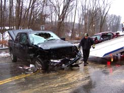 The Putnam County Fire Police Response Team was requested by Garrison FD to assist at an established road closure at the intersection of Routes 403 & 9D. Garrison was operating at an 8:00 AM crash (with extrication), between a SUV & pick up, in front of 781 Route 9D. According to reports, the SUV skidded on the ice covered pavement and struck the truck. Both drivers survived and were transported to a Westchester hospital. 02/24/10 |
