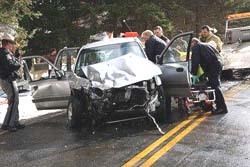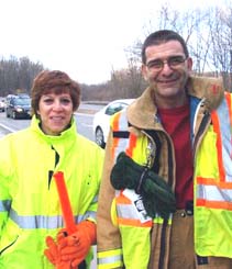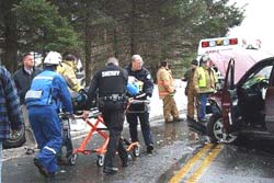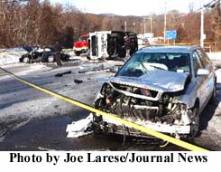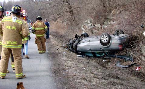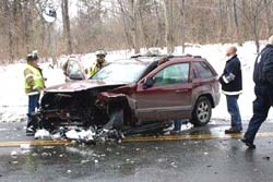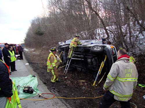 Pawling Fire Department, ambulance and fire police interrupted Saturday afternoon motorists traveling Route 22, when they were called to a single car roll-over on the northbound shoulder. According to the FD there were no serious injuries. All photos by Sharon Boo 02/20/10 |