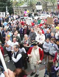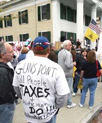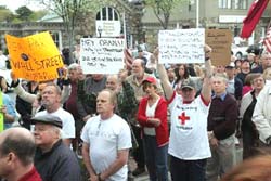 Some fire police attended a Tea Party Tax Revolt meeting in front of the Historic Putnam County Court House as concerned citizens, while others responded to a call from Carmel Fire Dept. to assist their fire police, Carmel PD, Sheriff’s Deputies and the State Police, with traffic and crowd control. The assembly, estimated to be over 1200 residents, virtually shut down several local streets and Routes 52 and 6 through downtown Carmel.