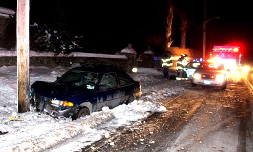 Mahopac Falls Fire Department members were readying themselves for a SUCBA drill when they were toned out for a "car into a pole" on Rt. 6N, delaying the drill and triggering an immediate department response. To protect operations, fire police shut one lane diverting northbound traffic around the crash. No injuries were reported.