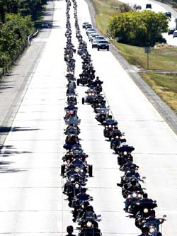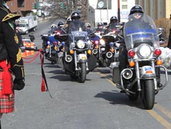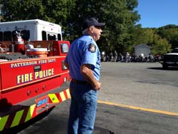 The Patterson fire police were selected to join Brewster and Carmel Fire Departments, assorted veteran's vehicles, and over 200 motorcycles, in escorting "The Wall" from the rest area on I 84 in (Westchester County), through eastern Putnam County, ending at the County Park. The exhibit honors those who made the ultimate sacrifice during the Vietnam War. The travelling exhibit was erected there to be available for public viewing for the remainder of the week.