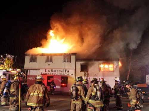 An 8:30 p.m. fire broke out in La Russell's Laundry-Cleaners, located on Route 52 in Lake Carmel. Although out of business for some time, it was reported the building still contained many dry cleaned items which forced abandonment of an initial interior attack. Of the two apartments located above, one was not occupied, and the other quickly evacuated. Lake Carmel Fire police had to shut down Route 52 for approximately 4.5 hours. Carmel, Kent, Brewster, Patterson were also assisting at the scene along with Carmel Volunteer Ambulance. The cause of the blaze at this time remains under investigation.