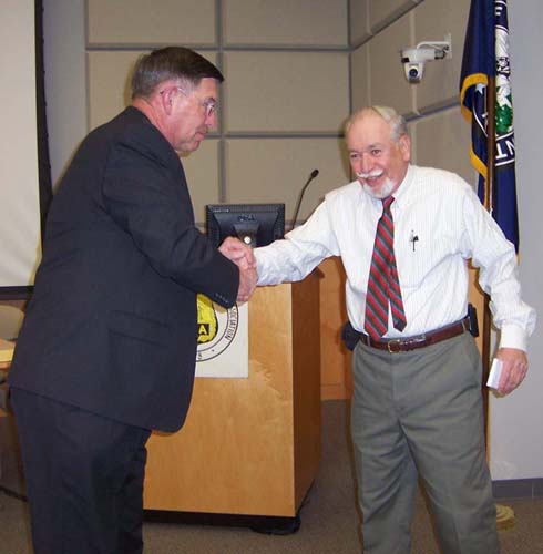 Undersheriff Peter Convery received a round of applause for helping Corrections Officer & PNWFPA Secretary, Angie McGoorty, “escape” from jail in order to attend this year’s seminar, as President Bodor presented a gift of flowers on behalf of a grateful membership. |