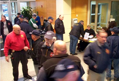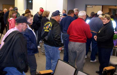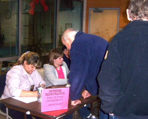 Secretary McGoorty and other PNWFPA officers register attendees and accept dues. Several new fire police also took the occasion to join the Association. Attendance was just under 150 first responders. | |