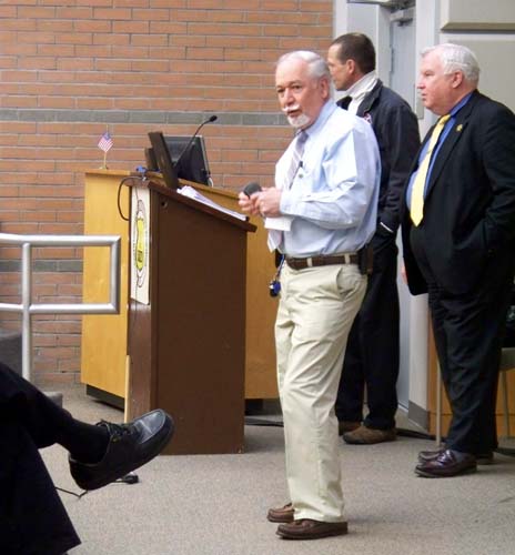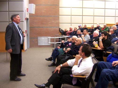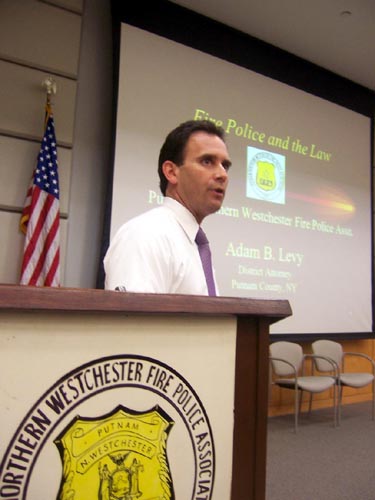 Adam B. Levy, Putnam County District Attorney, was the first presenter of the evening. He gave an in depth power point survey of the legal responsibilities, liabilities, training, and duties of peace officers. | |