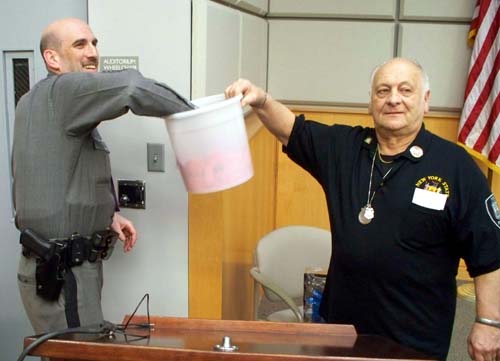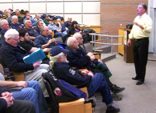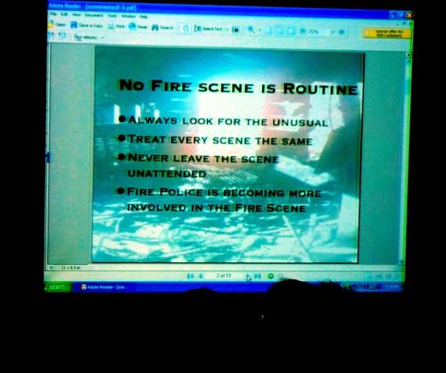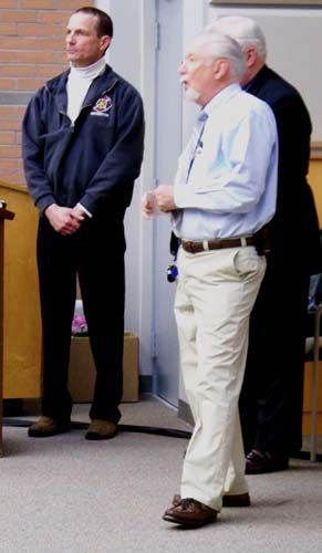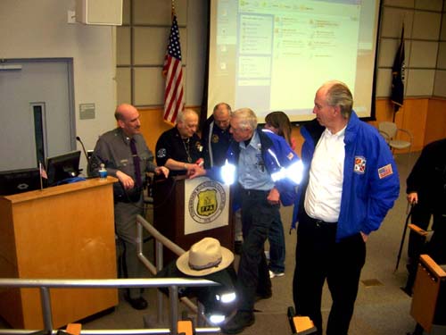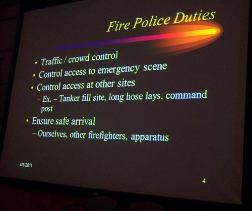 Suffolk County Fire Academy Instructor Paul Gerrard gave a presentation on scene, preservation, responder safety, and observation. He was accompanied by his father, Gene, who is editor of the Volunteer Fire Police News. | |