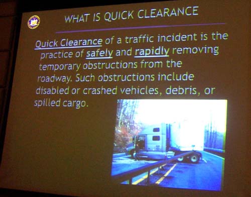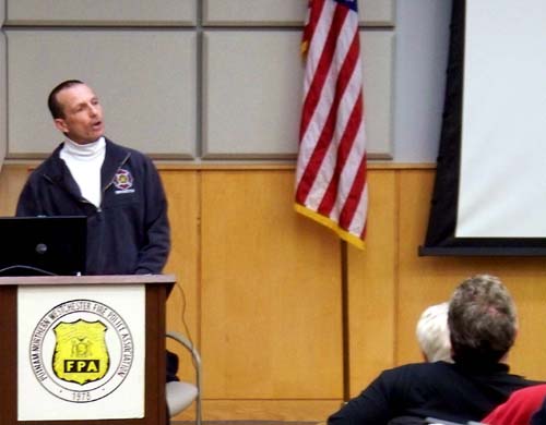 The PNWFPA's second guest, New York State Police Tec./Sgt. Ira Promisel, gave a Power Point program that dealt primarily with "Quick Clearance" of highway emergencies as one strategy to avoid potential injuries or deaths to first responders and the safety of the public at large. | |