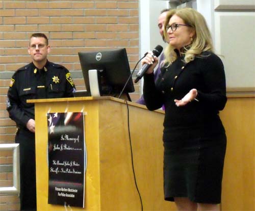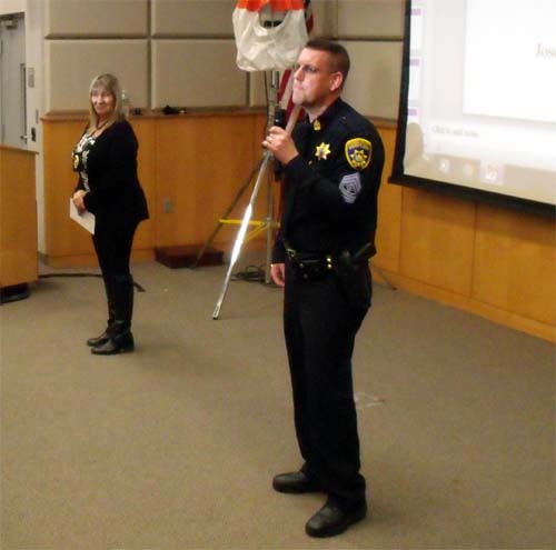 The 2017 Seminar opened with President Marilyn Miller welcoming a near capacity crowd to the Seminar. First Sargent William Meyer welcomed everyone, and led the assembly in the Pledge of Allegiance. Also addressing the attendees were Assistant Commissioner Ken Clair, who also pointed out the exits, and County Executive MaryEllen Odell. The invocation was offered by chaplain Lou Mettey.