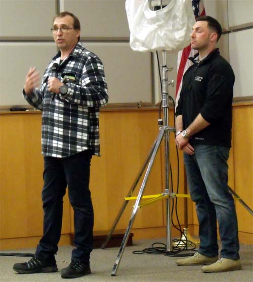Presenters the first evening were from Airstar America, the inventor and world leader in balloon lighting technology. The manufacturer was represented by John Roussos from Des Plaines, IL and the local sales Rep. was Michael Lesko from Traffic Lane Closures, LLC in Carmel, NY. There were a number of new members who recieved their membership cards this evening. As always, the break snacks were well received. Special memtion was made of Bill Keating's imminent retirement after many years of faithful service to the people of Putnam County. As always, the 50 / 50 raffle was a great success, with a couple of members happy they attended the meeeting.