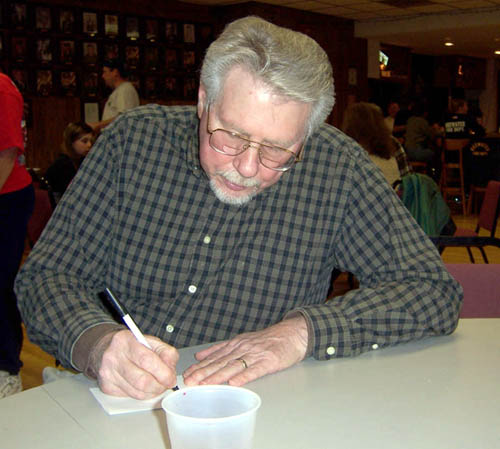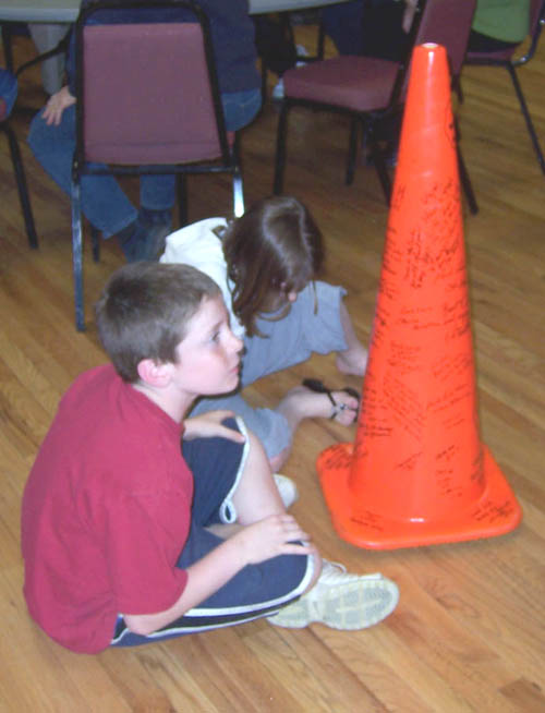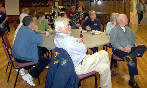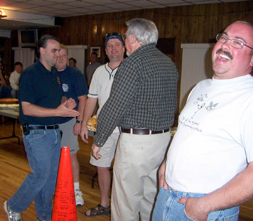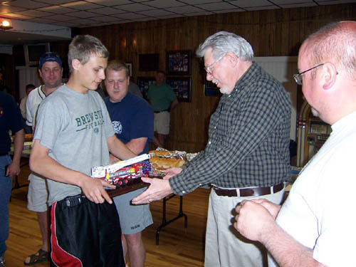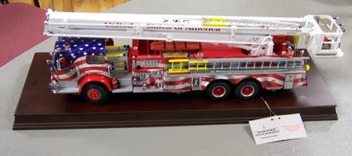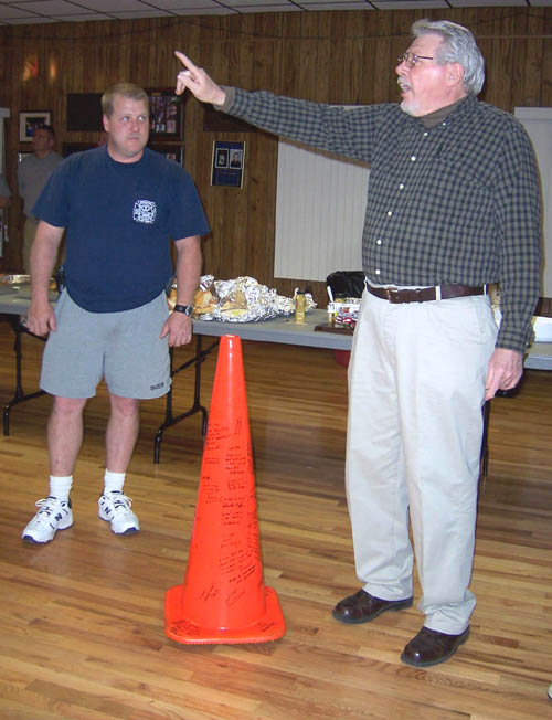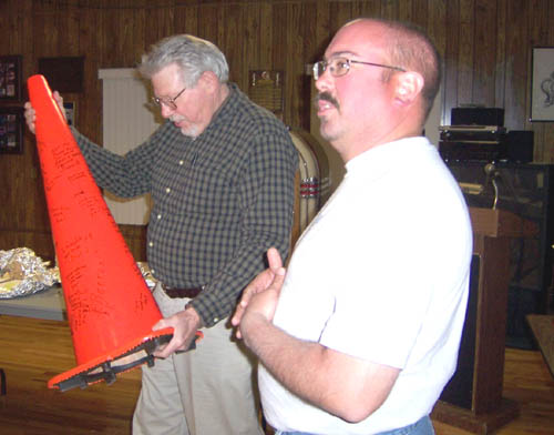 Wayne was presented with his own fire truck and a cone, signed by all present |