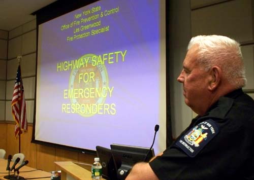 Featured speakers for the evening were Les Greenwood, Fire Protection Specialist from the NYS Office of Fire Prevention & Control and John Horan, Jr., Deputy Commissioner, Department of Emergency Services in Orange County. |
