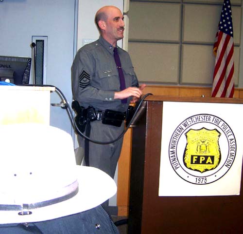 The PNWFPA's second guest, New York State Police Tec./Sgt. Ira Promisel, gave a Power Point program that dealt primarily with "Quick Clearance" of highway emergencies as one strategy to avoid potential injuries or deaths to first responders and the safety of the public at large. | |