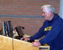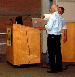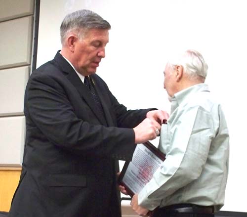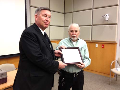 The 2015 seminar opened with Sheriff Donald B. Smith welcoming over 100 attendees and recognizing President Bodor for his 30 years of his leadership of the PNWFPA. He was inducted into the Sheriff's Honor Corps an honor reserved for those who have given outstanding service the community and assistance to the sheriff's department. Presenters the first evening were Kent K-9 Officer Vanderwood and his partner Radar who explained his training and abilities of his dog. Putnam County Sheriff's Deputy Quick covered a multitude of issues fire police may encounter when afield. |