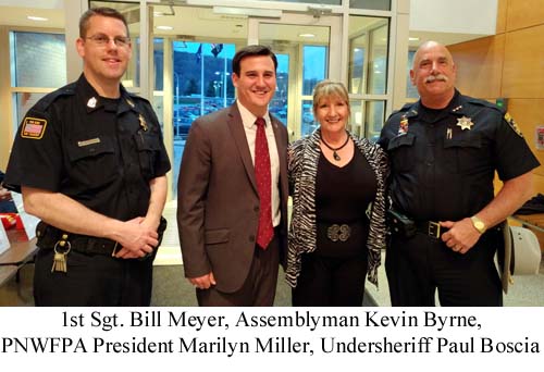 The 2017 Seminar opened with President Marilyn Miller welcoming a near capacity crowd to the Seminar. First Sargent William Meyer welcomed everyone, and led the assembly in the Pledge of Allegiance. Also addressing the attendees were Assistant Commissioner Ken Clair, who also pointed out the exits, and County Executive MaryEllen Odell. The invocation was offered by chaplain Lou Mettey.